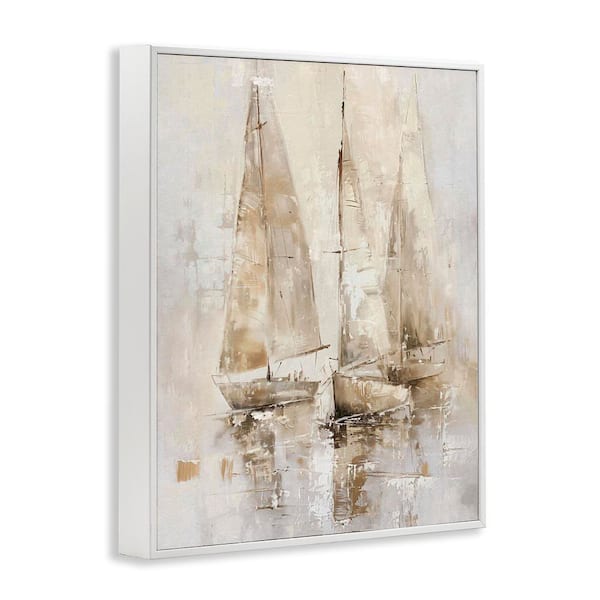 Neutral Sailing on Sea by Nina Blue White Framed Coastal Giclee Art Print 14 in. x 11 in.