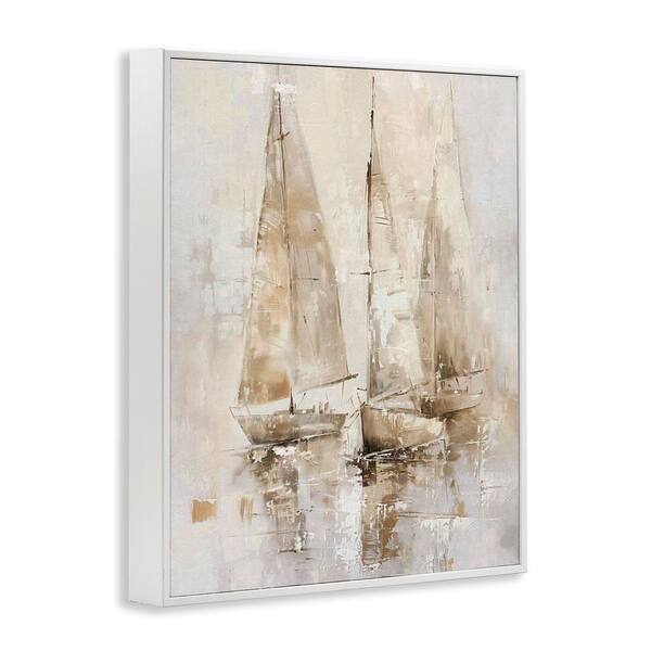 Neutral Sailing on Sea by Nina Blue White Framed Coastal Giclee Art Print 20 in. x 16 in.