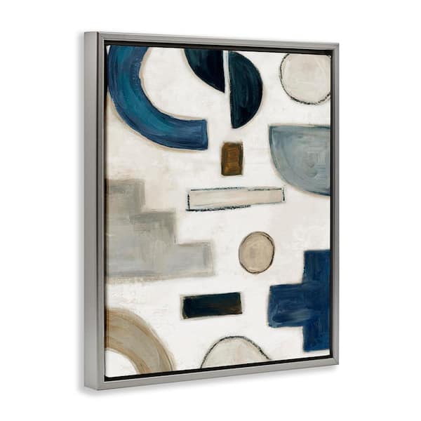Neutral Shapes Blue & Beige by Emma Peal Gray Floater Frame Abstract Graphic Art Print 21 in. x 17 in.
