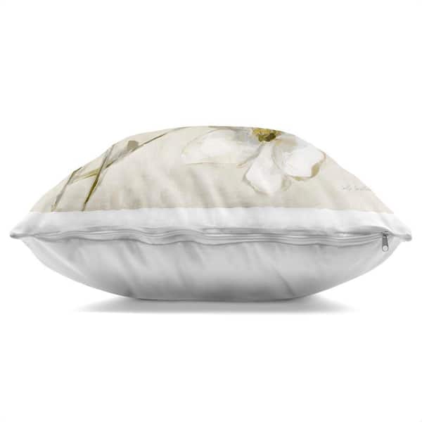 Neutral Tone Dogwood Flowers Off-White Abstract Polyester 18 in. x 18 in. Throw Pillow