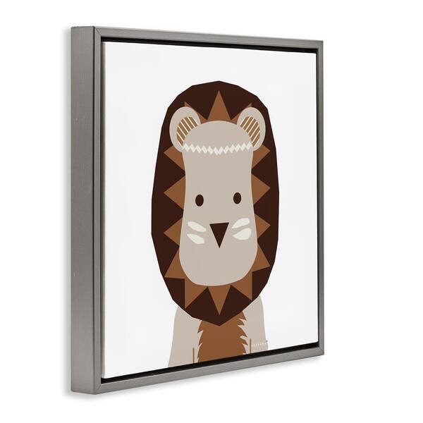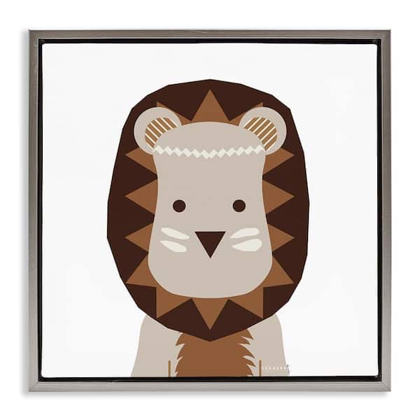 Neutral Tone Lion by Daniela Santiago Gray Floater Frame Animal Graphic Art Print 18 in. x 18 in.
