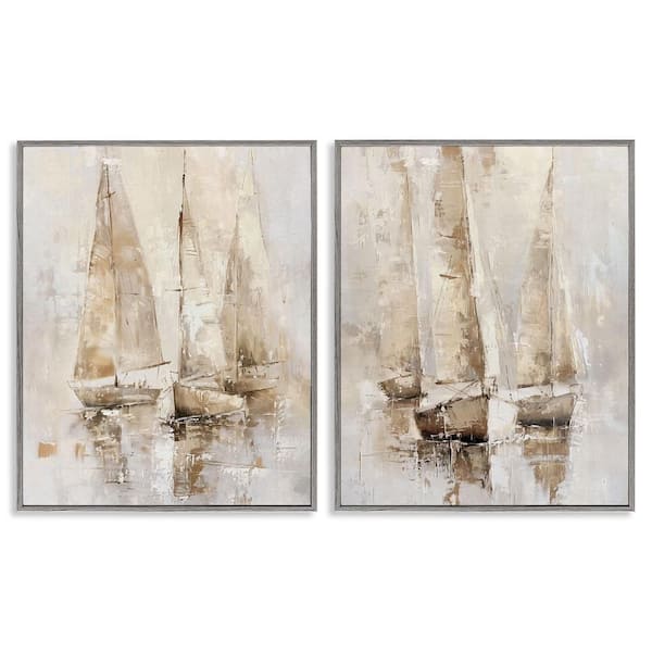 Neutral Toned Sailboats by Nina Blue 2 Pieces Gray Framed Coastal Giclee Art Print 30 in. x 24 in.