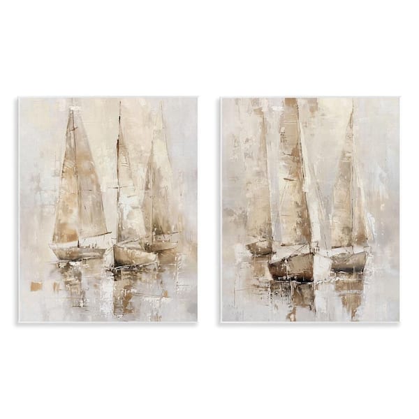 Neutral Toned Sailboats by Nina Blue 2 Pieces Unframed Coastal Graphic Art Print 14 in. x 11 in.