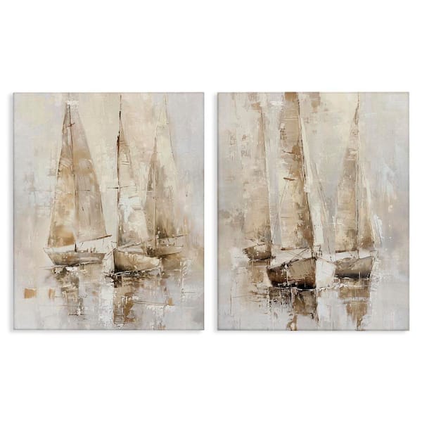 Neutral Toned Sailboats by Nina Blue 2-Pieces Unframed Coastal Graphic Art Print 20 in. x 16 in.