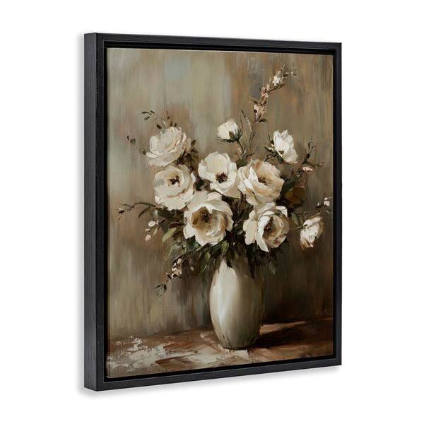 Neutral Traditional Bouquet by Petal Prints Design Black Floater Frame Nature Graphic Art Print 21 in. x 17 in.