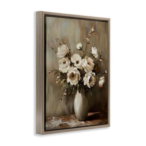 Neutral Traditional Bouquet by Petal Prints Design Brown Floater Frame Nature Graphic Art Print 31 in. x 25 in.