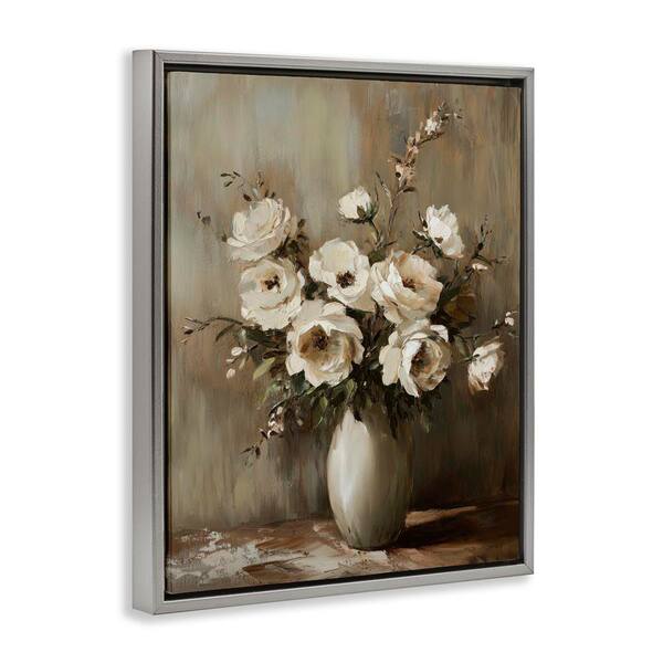 Neutral Traditional Bouquet by Petal Prints Design Gray Floater Frame Nature Graphic Art Print 31 in. x 25 in.