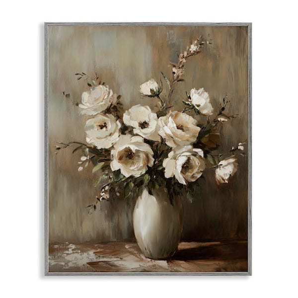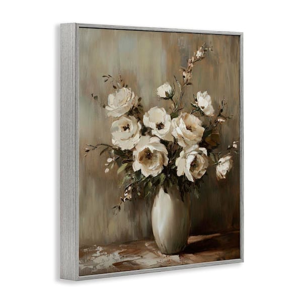 Neutral Traditional Bouquet by Petal Prints Design Gray Framed Nature Giclee Art Print 30 in. x 24 in.