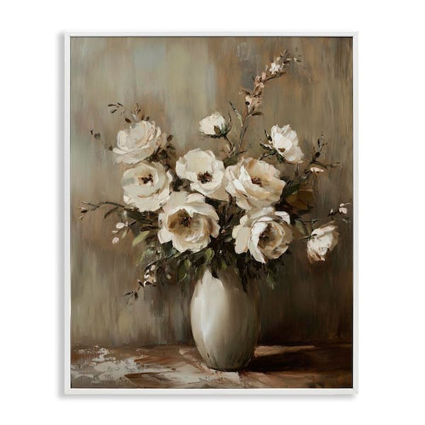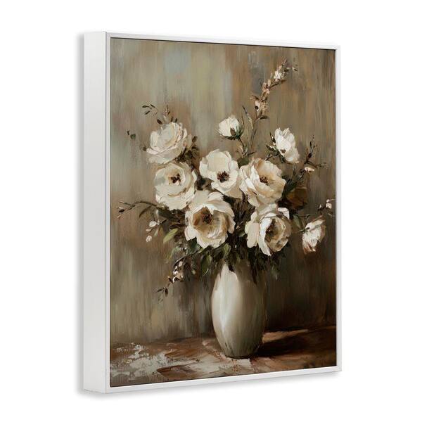 Neutral Traditional Bouquet by Petal Prints Design White Framed Nature Giclee Art Print 14 in. x 11 in.