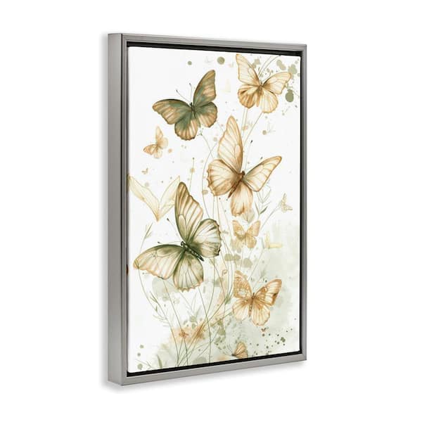 Neutral Watercolor Butterflies by LSR Design Studio Gray Floater Frame Animal Graphic Art Print 25 in. x 17 in.