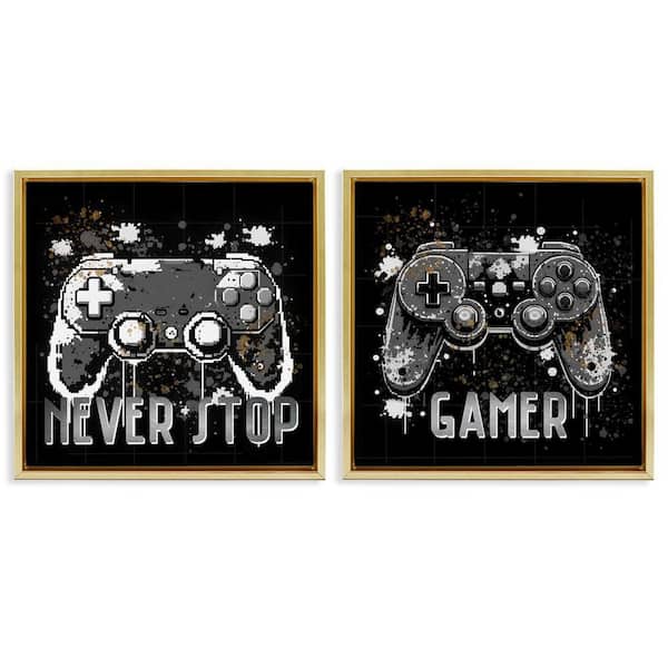 Never Stop Modern Gamer by Kim Allen 2-Pieces Gold Floater Frame Typography Graphic Art Print 18 in. x 18 in.