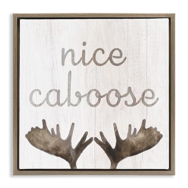 Nice Caboose Bathroom Moose Antlers by Lil' Rue 1-Piece Brown Floater Frame Abstract Graphic Art Print 25 in. x 25 in.