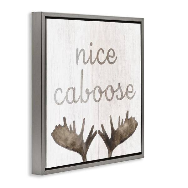Nice Caboose Bathroom Moose Antlers by Lil' Rue 1-Piece Gray Floater Frame Abstract Graphic Art Print 18 in. x 18 in.