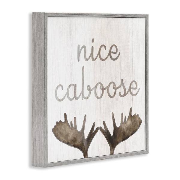 Nice Caboose Bathroom Moose Antlers by Lil' Rue 1-Piece Gray Framed Abstract Giclee Art Print 17 in. x 17 in.