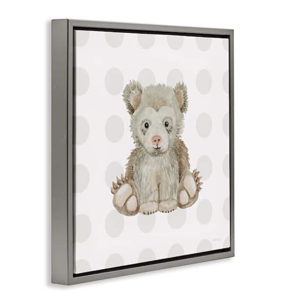 Nursery Bear on Dots by Cindy Jacobs Gray Floater Frame Animal Graphic Art Print 18 in. x 18 in.
