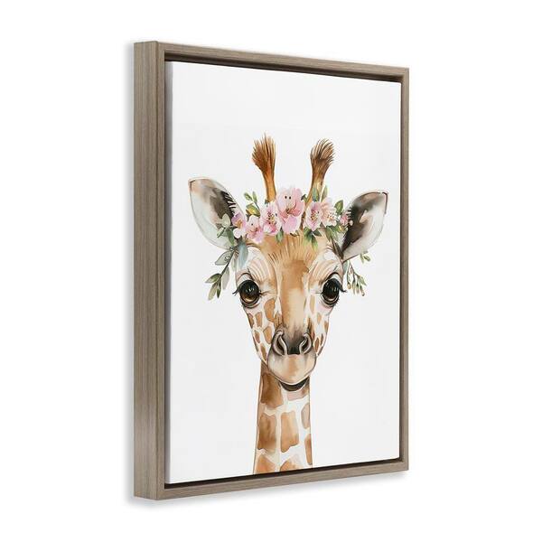 Nursery Floral Giraffe by LSR Design Studio Brown Floater Frame Animal Graphic Art Print 21 in. x 17 in.
