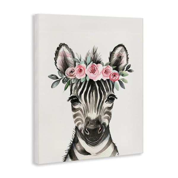 Nursery Floral Zebra by LSR Design Studio Unframed Animal Graphic Art Print 30 in. x 24 in.