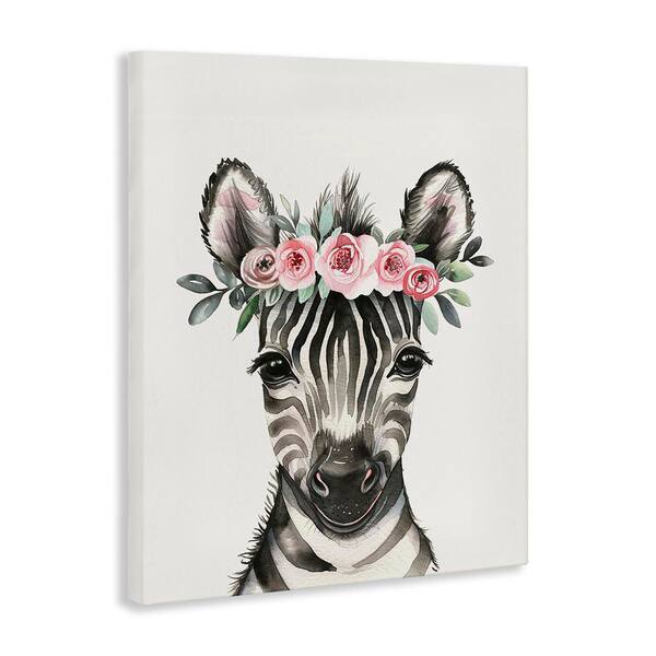 Nursery Floral Zebra by LSR Design Studio Unframed Animal Graphic Art Print 48 in. x 36 in.