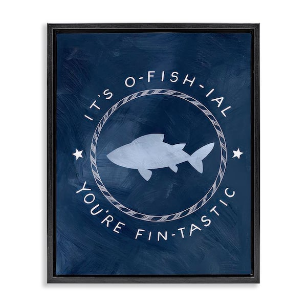 Officially Fantastic Fish Pun by Caverly Smith Black Floater Frame Coastal Graphic Art Print 21 in. x 17 in.