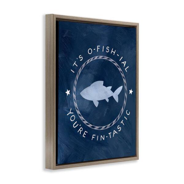 Officially Fantastic Fish Pun by Caverly Smith Brown Floater Frame Coastal Graphic Art Print 31 in. x 25 in.