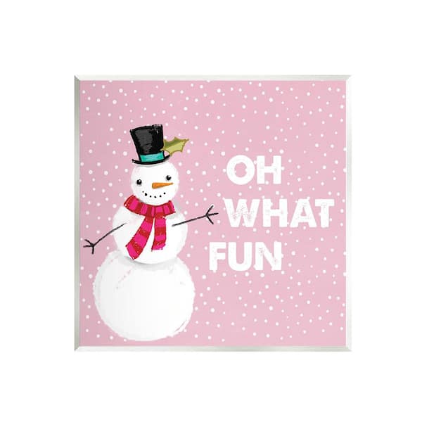 Oh What Fun Pink Snowman by Lula Bijoux & co. 1-Piece Unframed Graphic Print Typography Poster Art Print 12 in. x 12 in.