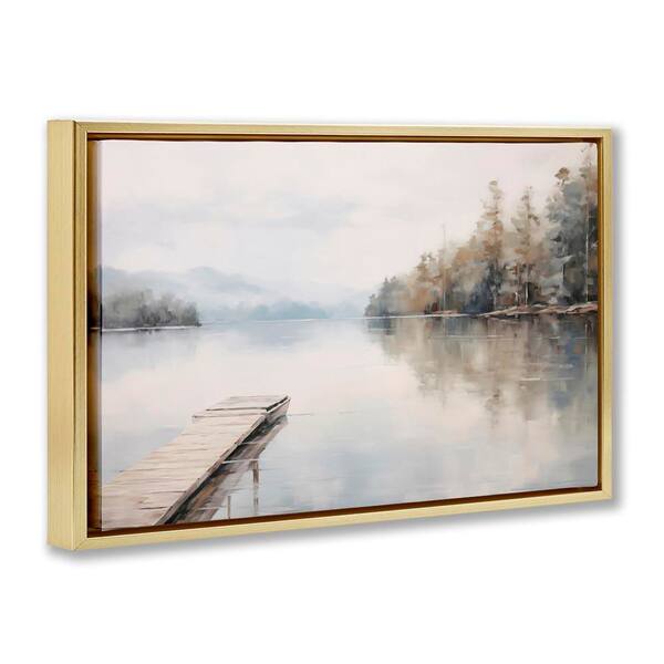 Old Lake Dock View by Arlington Prints Gold Floater Frame Nature Graphic Art Print 21 in. x 31 in.