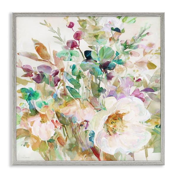 Opaque Distressed Blooms by Carol Robinson Gray Framed Nature Giclee Art Print 17 in. x 17 in.