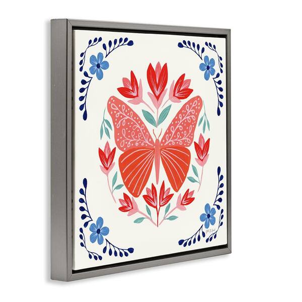 Orange Folk Butterfly by Yvette St. Amant Gray Floater Frame Animal Graphic Art Print 25 in. x 25 in.