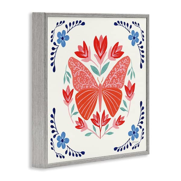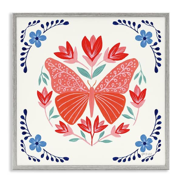Orange Folk Butterfly by Yvette St. Amant Gray Framed Animal Giclee Art Print 12 in. x 12 in.