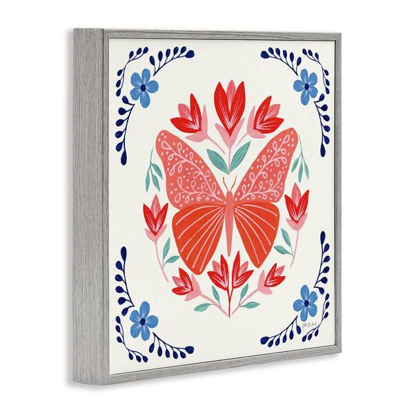 Orange Folk Butterfly by Yvette St. Amant Gray Framed Animal Giclee Art Print 24 in. x 24 in.