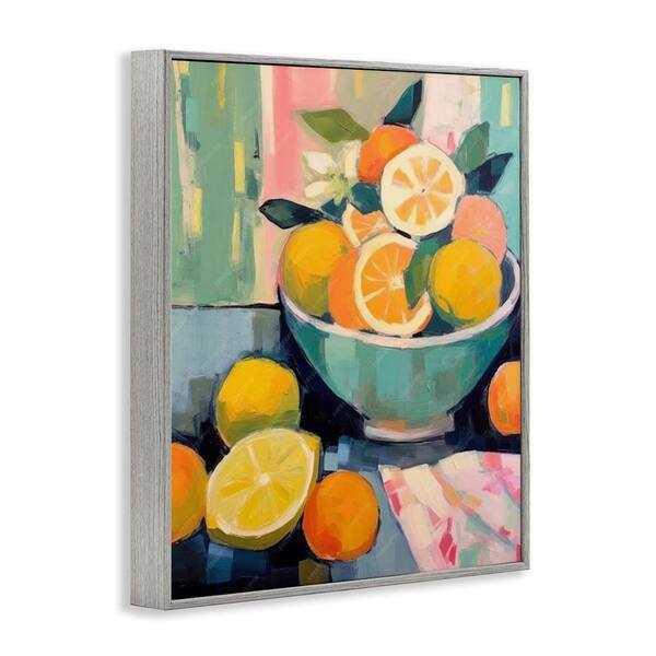 Orange and Lemon Bowl by LSR Design Studio Gray Framed Food Giclee Art Print 20 in. x 16 in.