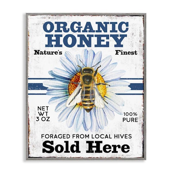 Organic Honey Sold Here by Creatif Belle Gray Framed Animal Giclee Art Print 20 in. x 16 in.
