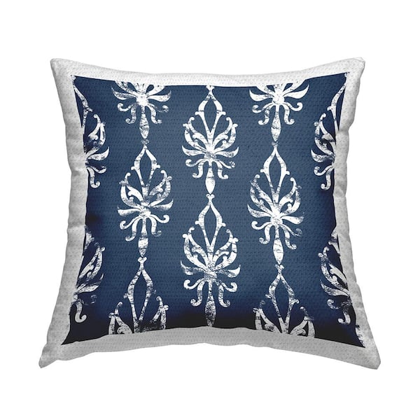 Ornate Blue White Pattern Blue Square Outdoor Throw Pillow