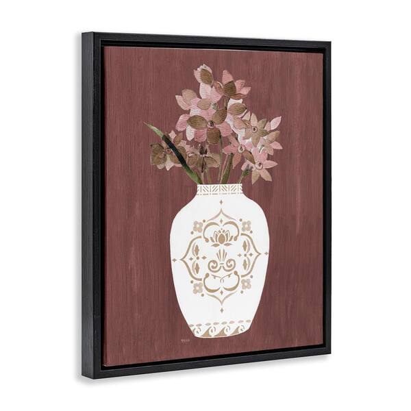Ornate Boho Vase by Janet Tava Black Floater Frame Nature Graphic Art Print 21 in. x 17 in.