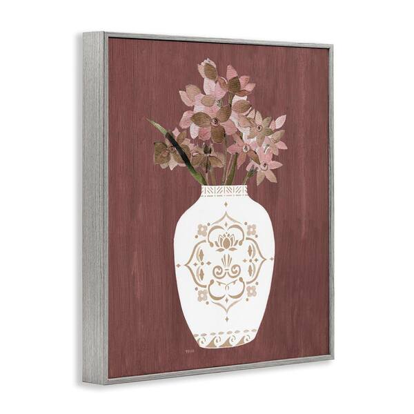 Ornate Boho Vase by Janet Tava Gray Framed Nature Giclee Art Print 30 in. x 24 in.