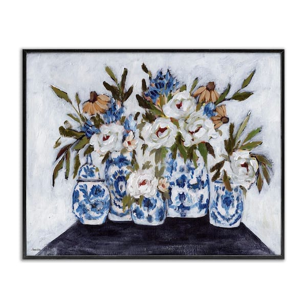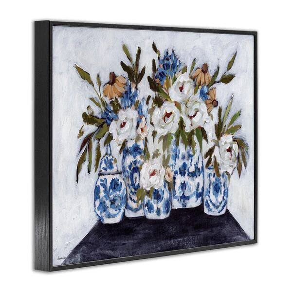 Ornate Flower Pots Still Life by Amanda Hilburn Black Framed Nature Giclee Art Print 11 in. x 14 in.