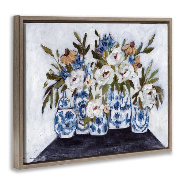 Ornate Flower Pots Still Life by Amanda Hilburn Brown Floater Frame Nature Graphic Art Print 25 in. x 31 in.