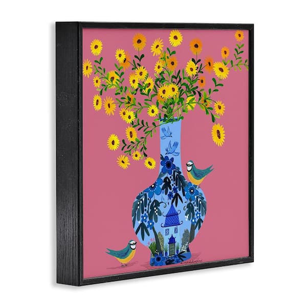 Ornate Vase with Daisies by Kay Widdowson Black Framed Nature Giclee Art Print 17 in. x 17 in.