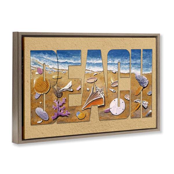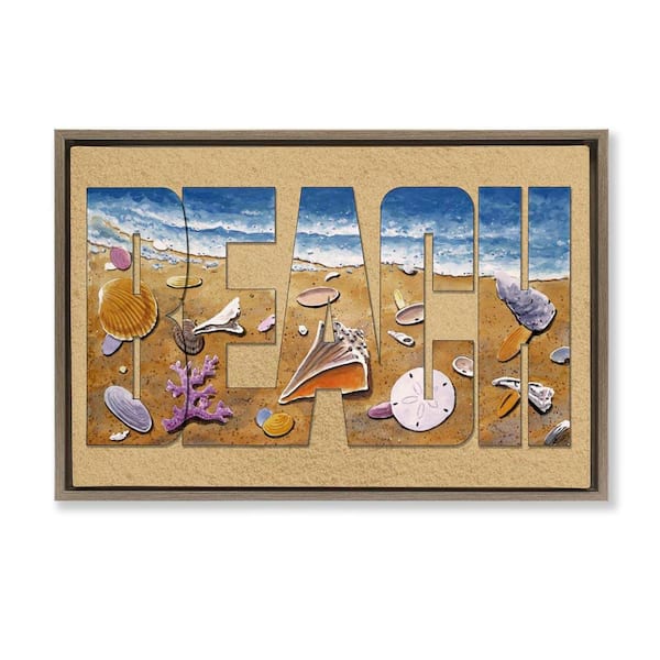 Outlined Beach Letters by Art Brands Holdings, LLC. Brown Floater Frame Coastal Graphic Art Print 17 in. x 25 in.
