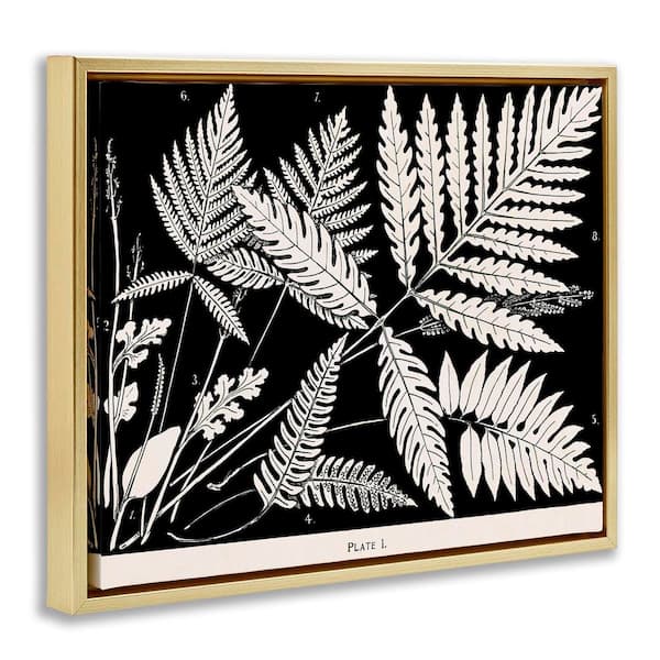 Overlapping Ferns on Black by Phillipa Katz Gold Floater Frame Nature Graphic Art Print 25 in. x 31 in.