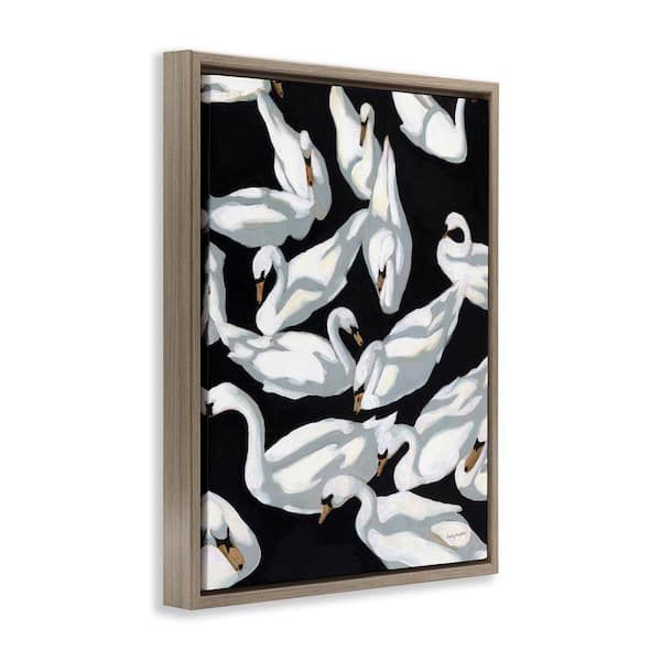 Overlapping Swans on Black by Haley Knighten Brown Floater Frame Animal Graphic Art Print 21 in. x 17 in.