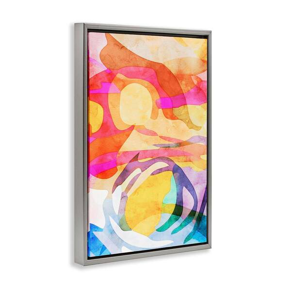 Overlapping Transparent Shapes by Incado Gray Floater Frame Abstract Graphic Art Print 31 in. x 21 in.