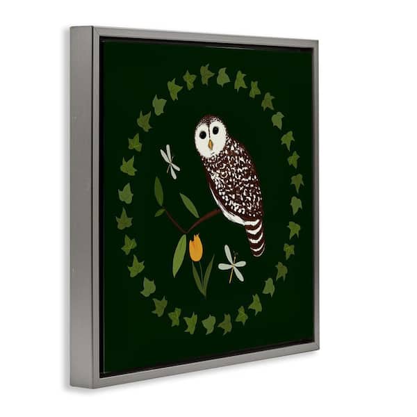 Owl & Tulip Wreath by Michelle Ingari Designs Gray Floater Frame Animal Graphic Art Print 18 in. x 18 in.