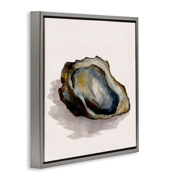 Oyster Shell on Beige by Jacob Q Gray Floater Frame Coastal Graphic Art Print 25 in. x 25 in.