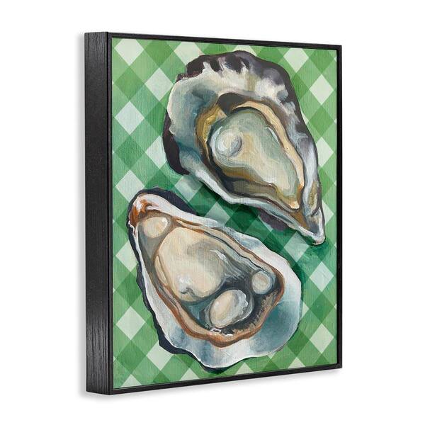 Oysters on Green Plaid by Daphne Polselli Black Framed Animal Giclee Art Print 14 in. x 11 in.