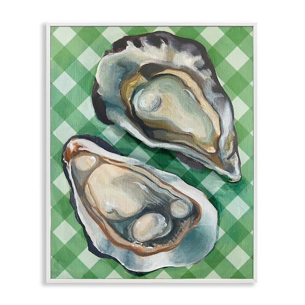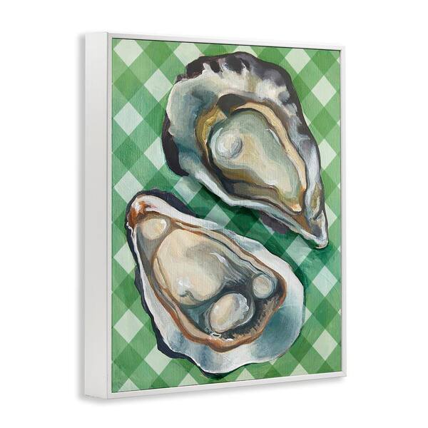 Oysters on Green Plaid by Daphne Polselli White Framed Animal Giclee Art Print 14 in. x 11 in.