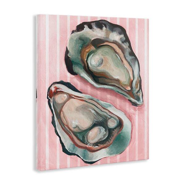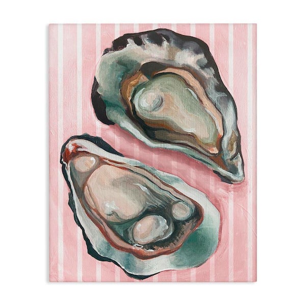Oysters on Pink Stripes by Daphne Polselli Unframed Animal Graphic Art Print 20 in. x 16 in.