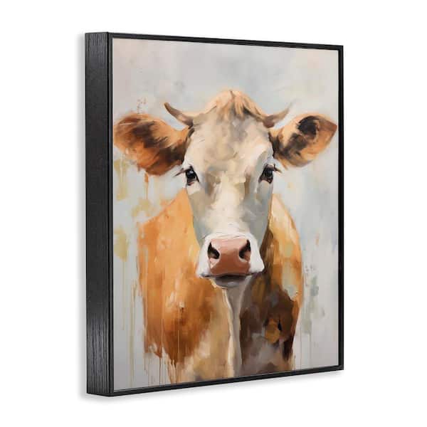 Paint Drip Jersey Cow by Arlington Prints Black Framed Animal Giclee Art Print 20 in. x 16 in.