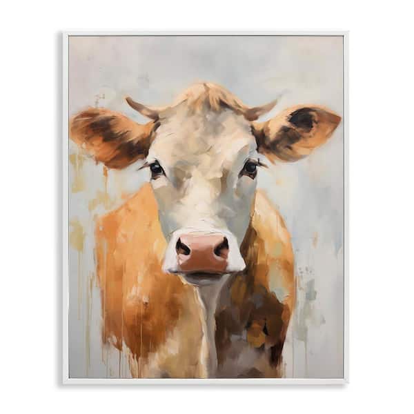 Paint Drip Jersey Cow by Arlington Prints White Framed Animal Giclee Art Print 20 in. x 16 in.