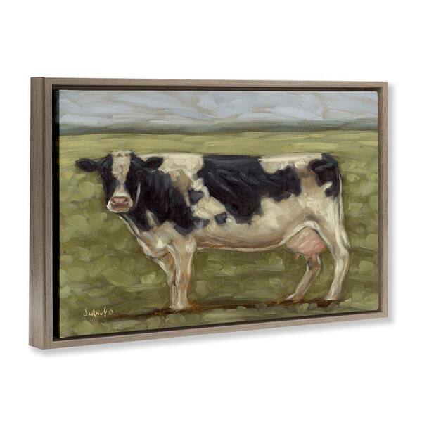 Painterly Cow on Farm by Sara G. Designs Brown Floater Frame Animal Graphic Art Print 21 in. x 31 in.
